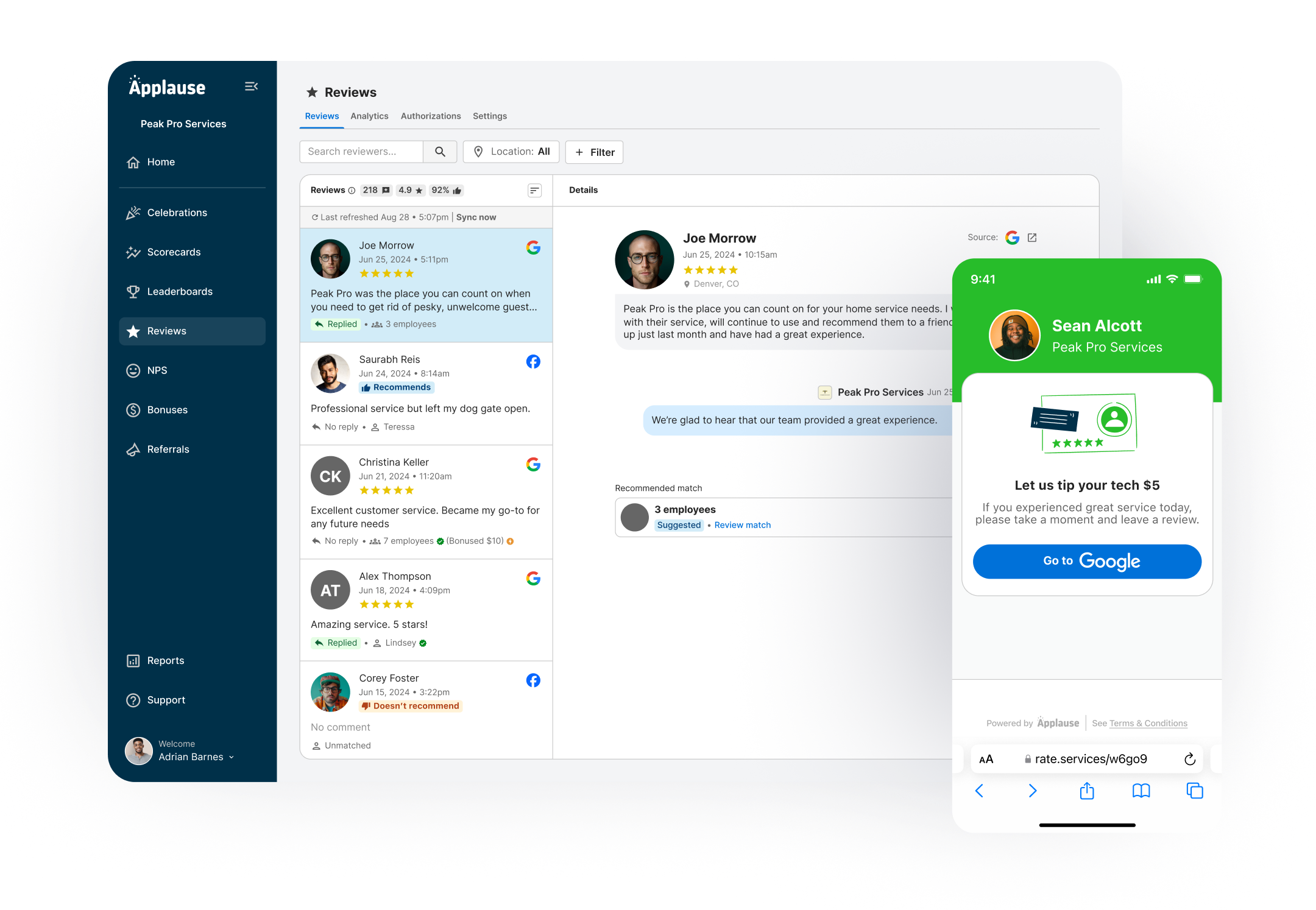 "They get a Google review, Applause automatically bonuses them. Another thing off my plate."