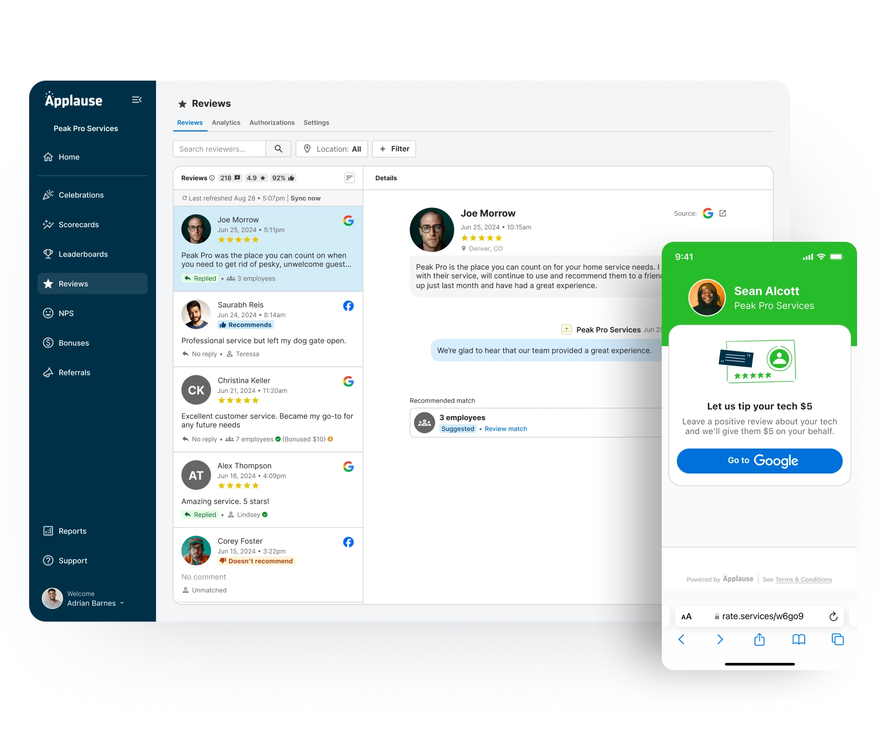 "They get a Google review, Applause automatically bonuses them. Another thing off my plate."