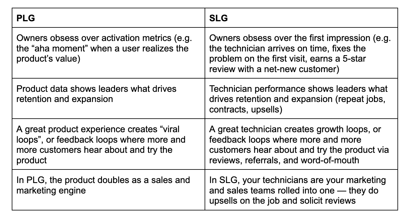 Here are a few ways SLG is basically PLG, but for field and home services: