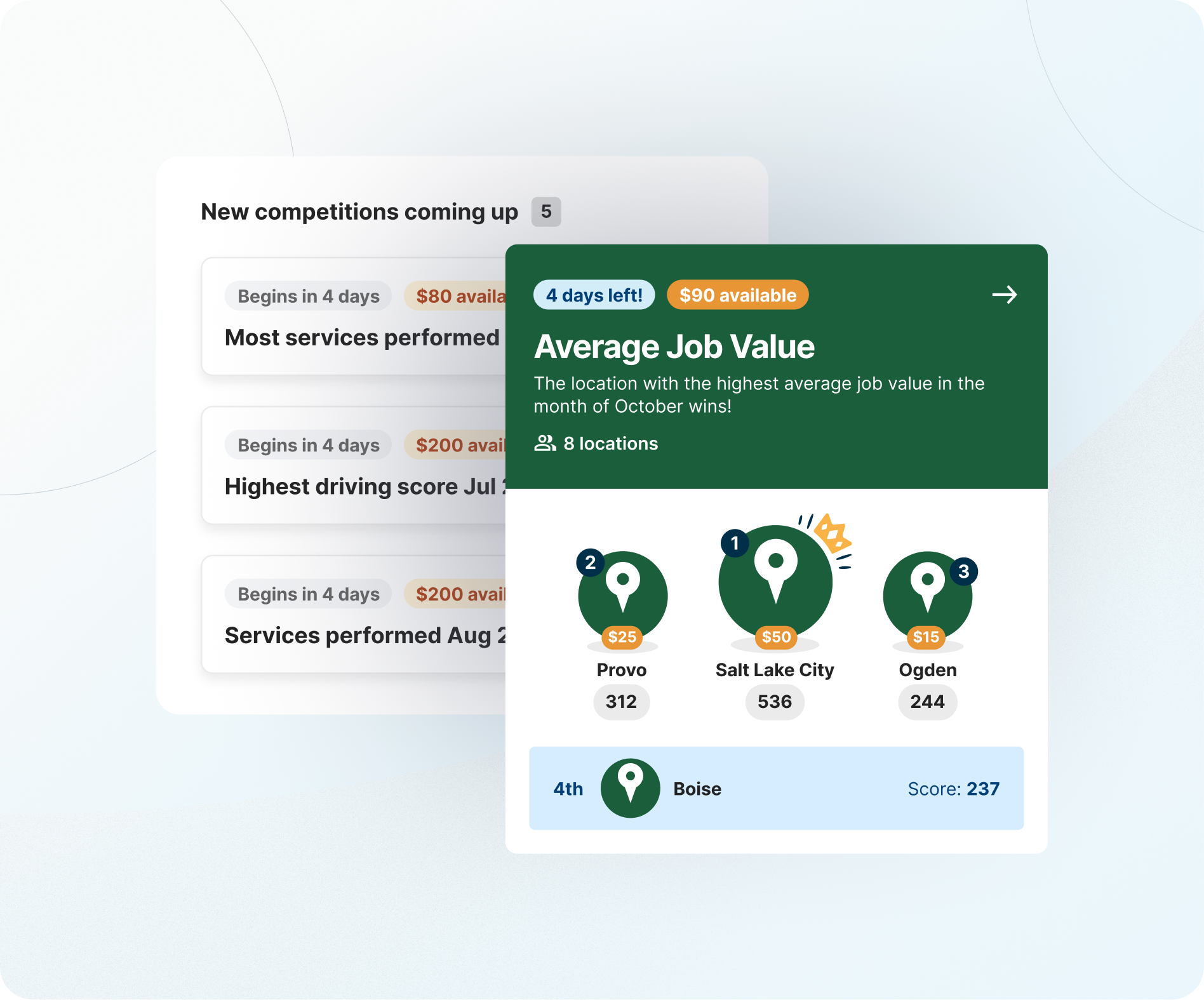 Competitions aren’t just for recognition; they’re a powerful way to influence outcomes. When a key metric starts to lag, create a targeted challenge to re-engage your team and see results in real time.